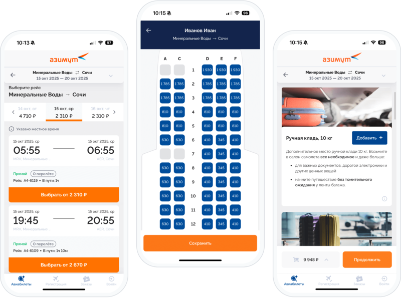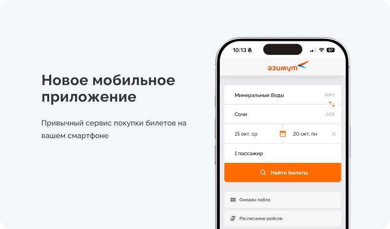 Авиакомпании Азимут выпустила новые мобильные приложения для iOS и Android