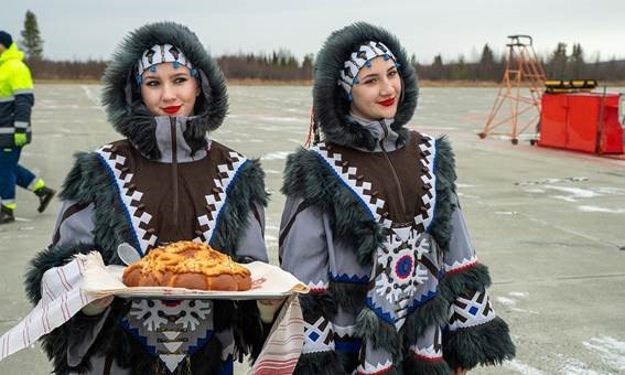 Аэропорт Хибины встретил пассажиров и экипаж первого рейса авиакомпании Азимут традиционным караваем.